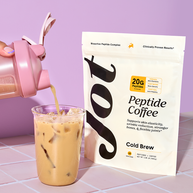Yes—because it is real coffee. Jot Peptide Coffee is made with our ultra-concentrated cold brew (the same one with 20,000+ 5-star reviews), blended bovine collagen, bioactive peptides, and MCTs (from coconut). It tastes like cold brew (with a subtle creaminess), not a chalky protein shake. No gritty texture, no artificial aftertaste. If you've been burned by protein coffees that taste like coffee-flavored sadness, this isn't that.
