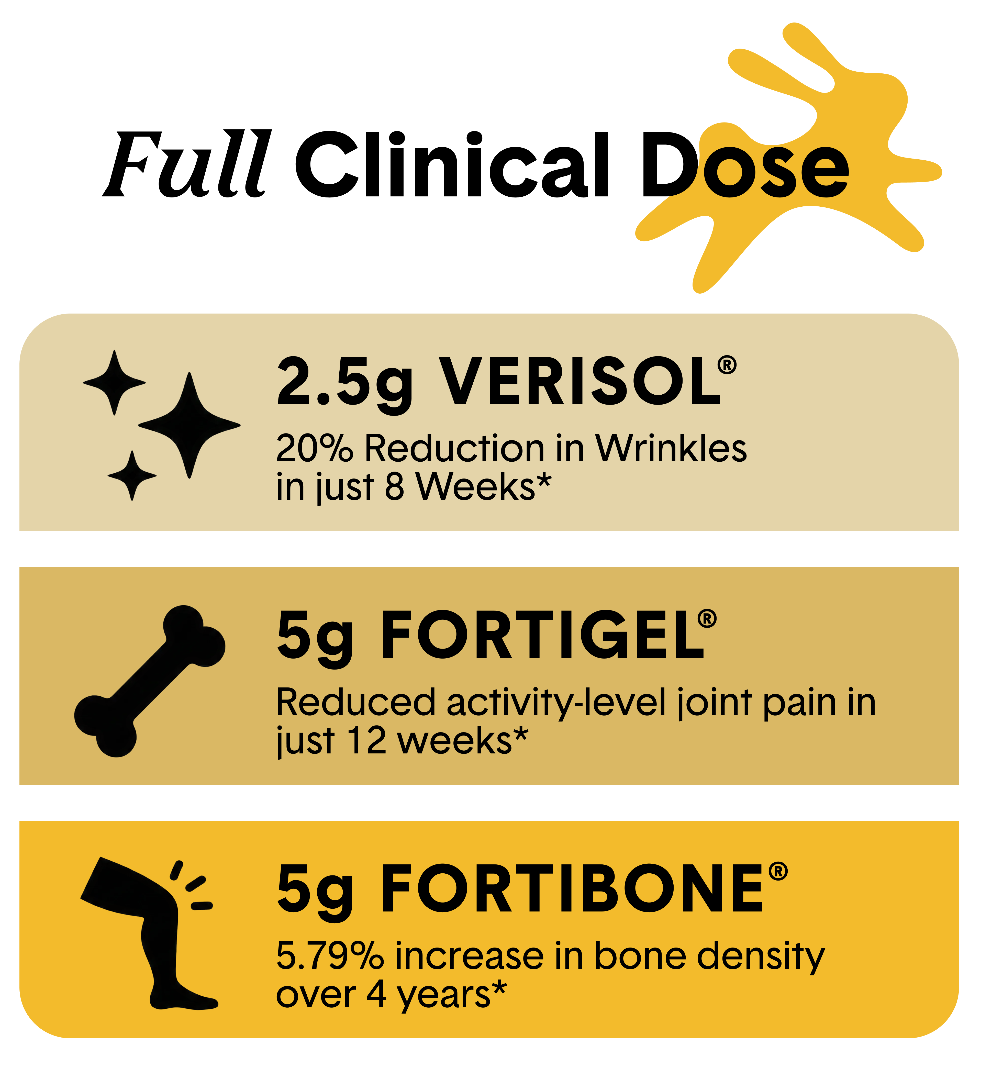 Yes. Jot contains the exact doses used in human clinical studies—just one scoop and you're on your way to glowing skin, healthier joints, and stronger bones.* No fairy dusting, no fillers, no fluff.